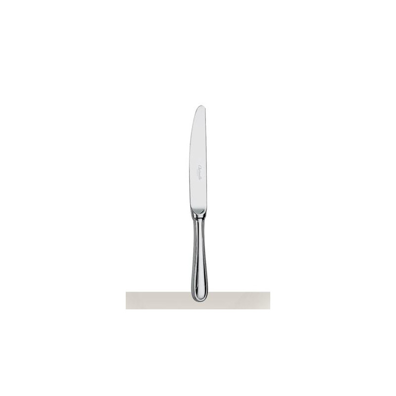 Coltello da dessert Christofle Albi Il coltello da dessert in lega argentata nel modello Albi può essere abbinato a un cucchiaio e una forchetta da dessert da utilizzare con dessert, insalate o antipasti. La linea Albi, creata nel 1968, trae ispirazione da una città francese situata tra Tolosa e Bordeaux e la sua famosa cattedrale nota per la sua straordinaria architettura, le linee rette pulite e l'unica navata. MATERIALE • lega argentata DIMENSIONI •: 19,5 cm