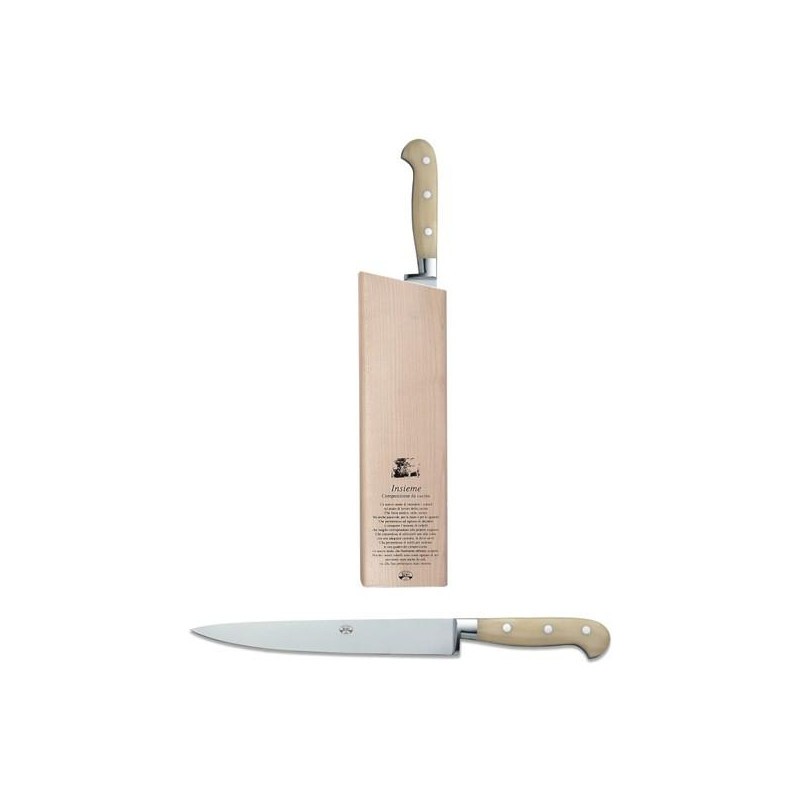 Il coltello pesce Berti con manico bianco è perfetto per tagliare e filettare pesce con precisione. La lama sottile e affilata consente di effettuare tagli delicati e accurati, mentre il manico bianco garantisce una presa comoda ed elegante. Il ceppo incluso permette di riporre il coltello in sicurezza, preservando la qualità e l'affilatura della lama. Un accessorio indispensabile per gli amanti della cucina raffinata.