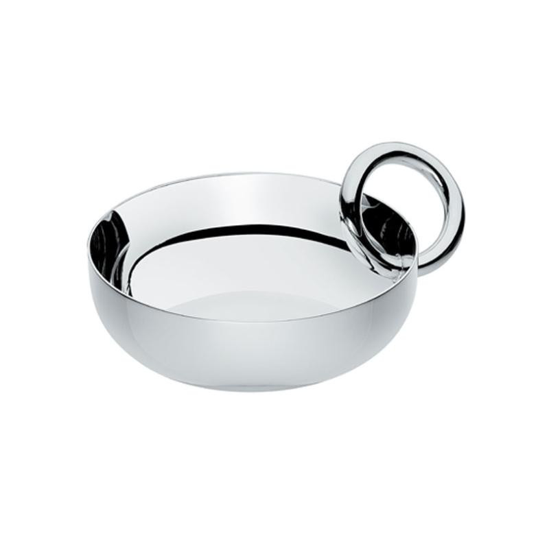 Christofle Vertigo coppetta in argento placcato, grande La grande coppetta Vertigo argentata con manico singolo è perfetta per servire spuntini come noci, olive o caramelle o può essere usata come catenella per gingillo. Il motivo audace di Vertigo - un anello sottilmente asimmetrico e spesso spesso posto giocosamente di sbieco - si può trovare su ogni pezzo della collezione disegnata da Andrée Putman. Vertigo ha un forte emblema: un anello, il cui design sensuale e sottilmente asimmetrico si trova su ogni pezzo. MATERIALE • Argento placcato DIMENSIONI • Ø: 17 cm