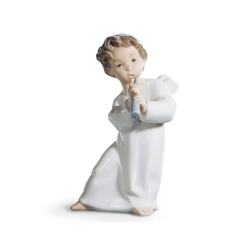 Angelo con Flauto Articolo 01004540 Dimensioni: 16 x 8 cm Figura realizzata da Fulgencio García Anno 1970 Porcellana decorata a mano