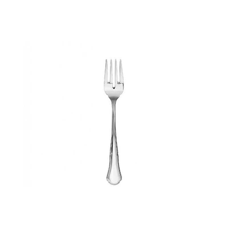 La forchetta pesce Barocchino, realizzata in argento 800 ad alto spessore, è ideale per una perfetta apparecchiatura quando sono previste portate di pesce. Abbinata al coltello pesce, garantisce eleganza e funzionalità. Il bilanciamento calibrato del peso assicura un'ottima maneggevolezza, rendendo l'uso della posata confortevole e pratico. Prodotta e rifinita a mano in Italia, la forchetta fa parte del servizio Barocchino, caratterizzato da uno stile sobrio e leggero, ispirato alla grandiosità del '700, perfetto per tavole classiche e informali.