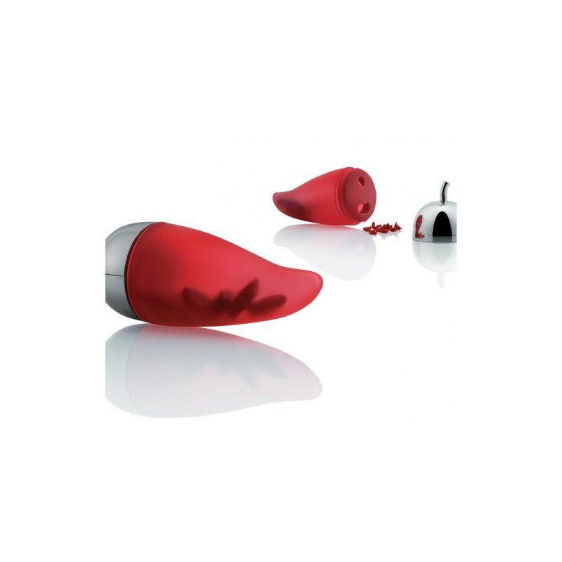 Alessi Sminuzza-peperoncino - JHT02 RED Piccantino Codice: JHT02 Sminuzza-peperoncino in gomma siliconica, rosso e acciaio inossidabile 18/10 lucido. Diametro (cm): 3.00 Altezza (cm): 9.00