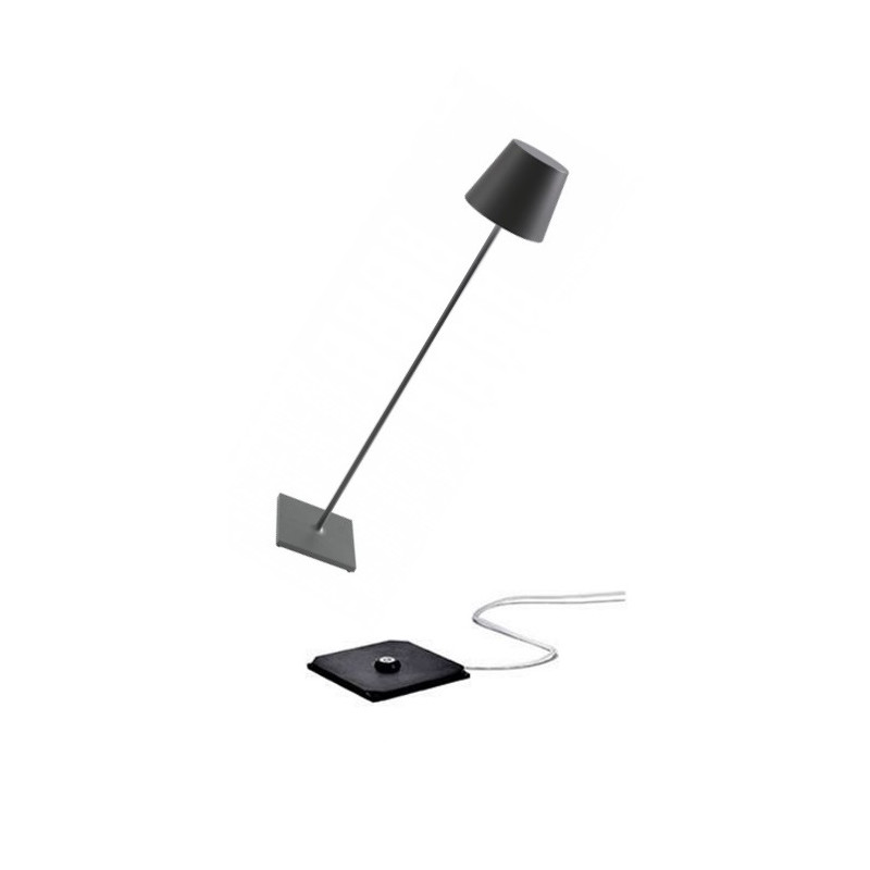 Poldina Pro è una lampada da tavolo portatile e ricaricabile, ideale per ambienti interni ed esterni. Dotata di un controllo touch sulla testa per accensione, regolazione dell'intensità luminosa e selezione della temperatura colore (2700K-3000K). Realizzata in alluminio pressofuso con diffusore in policarbonato, è resistente e pratica, grazie alla base di ricarica a contatto inclusa.