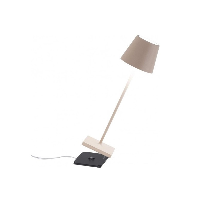 Poldina Pro è una lampada da tavolo portatile e ricaricabile, ideale per ambienti interni ed esterni. Dotata di un controllo touch sulla testa per accensione, regolazione dell'intensità luminosa e selezione della temperatura colore (2700K-3000K). Realizzata in alluminio pressofuso con diffusore in policarbonato, è resistente e pratica, grazie alla base di ricarica a contatto inclusa.