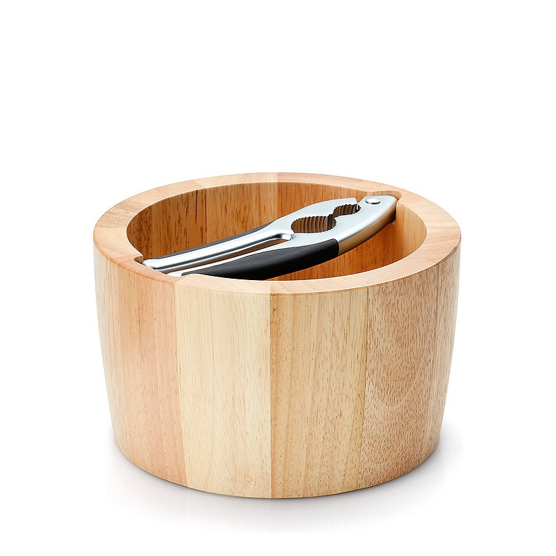 Due in uno: una ciotola con uno schiaccianoci integrato • Schiaccianoci integrato di alta qualità • Elevata resistenza del materiale • Design classico e moderno • Istruzioni per la cura: il legno è un prodotto naturale. Passare solo con un panno umido e asciugare. Umidità eccessiva o differenze di temperatura possono portare a deformazioni, crepe e scolorimento. Dimensioni: Lunghezza: 19 cm Larghezza: 19 cm Altezza: 11,5 cm Diametro Ø: 19 cm Forma: rotonda Materiale: legno dell'albero della gomma