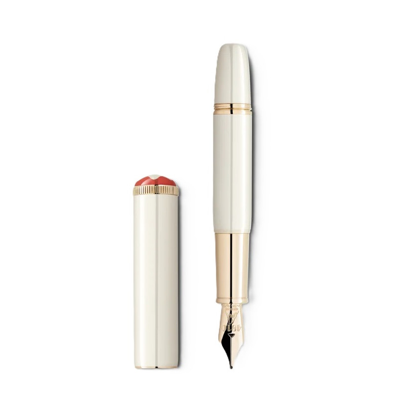 La Montblanc Heritage Collection Rouge et Noir “Baby” celebra lo spirito pionieristico e la ricca tradizione della Maison. Ispirandosi alle penne “Baby” degli anni ’20, Montblanc ha reinterpretato questo design rivoluzionario per l'epoca in chiave moderna. Il nome fa riferimento scherzosamente alle dimensioni ridotte di questo modello rispetto agli altri strumenti da scrittura Montblanc. Realizzata in pregiata lacca color avorio con dettagli finitura oro distintivo, è completata dall’emblema Montblanc in pregiata resina, circondato dalla tonalità corallo della collezione Rouge et Noir. Il pennino in oro massiccio Au585, lavorato a mano e con un disegno del Monte Bianco, esprime l'eleganza della Maison. Il termine "oro distintivo" descrive la tonalità luminosa di oro giallo, simbolo degli strumenti da scrittura Montblanc.