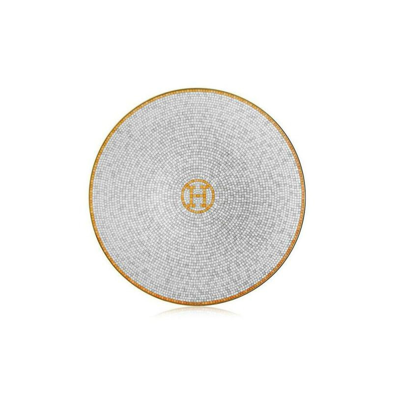 Hermes Mosaique au 24 Or Piatto Pane Piattino pane in porcellana che sfoggia un design elegante e decorativo, grazie al mosaico impresso sulla porcellana, con fregi geometrici nei toni del grigio opaco messi in risalto dalla luce dell”ocra intenso.Tocchi di oro brillante esaltano il decoro. Dimensioni: diametro 17 cm Codice: 26012P Per tutti i prodotti Hermés non disponibili al momento dell'acquisto, si prega di considerare tempistiche di consegna dai 6 fino ad oltre i 12 mesi.