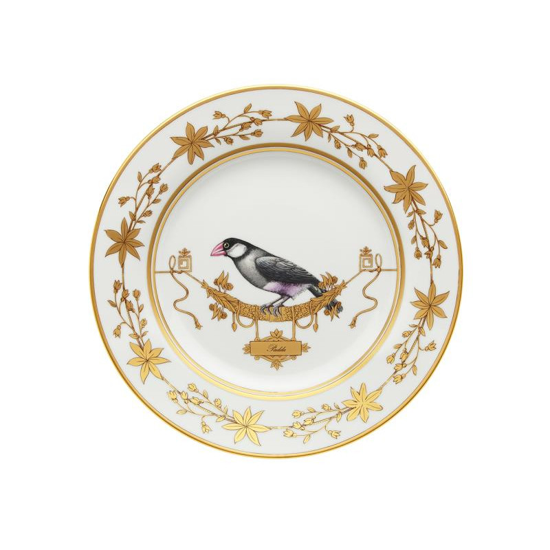 Richard Ginori Voliere Piatto Piano Forma: Impero Dimensioni: cm 26,5 Materiale: porcellana, finiture in oro Decorato a mano