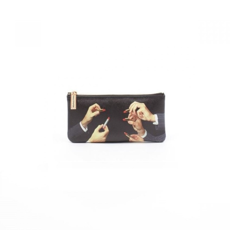 Astuccio Lipstick Black Design: TOILETPAPER Dimensioni: 21 x 9 cm Materiale: Esterno 100% PU, Imbottitura 100% Poliestere Codice: 02524