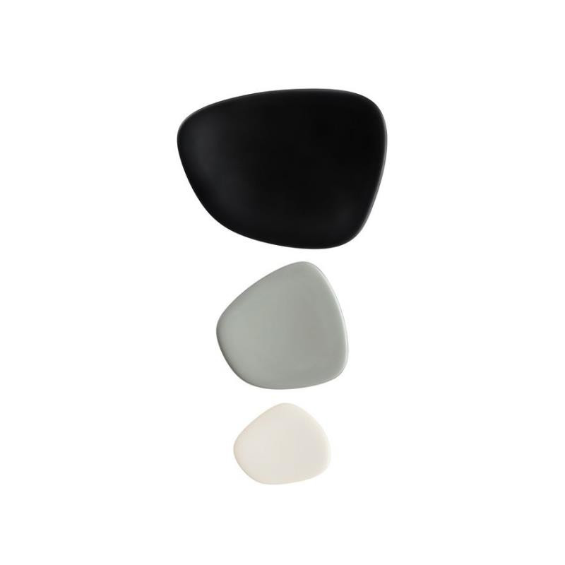 SET DI 3 VASSOI, "NAMASTE", 1236/CM - KARTELL Il set di 3 piatti/ vassoi di diverse dimensioni “Namaste” è caratterizzato da un design organico e asimmetrico che ricorda quello di sassi piatti e da una paletta cromatica molto naturale. I piatti possono essere abbinati in modo da creare gradevoli nuance ton-sur-ton o contrasti più decisi. Il vassoio grande è largo 45 cm lungo 36 cm e alto 2 cm, il medio è largo 27 cm lungo 26 cm e alto 1,4 cm e il piccolo è lungo 20 cm largo 19 cm e alto 1 cm. Materiale MELAMMINA Dimensioni Larghezza: 45 cm Profondità: 36 cm Altezza: 2 cm Peso unitario: 1.9 kg