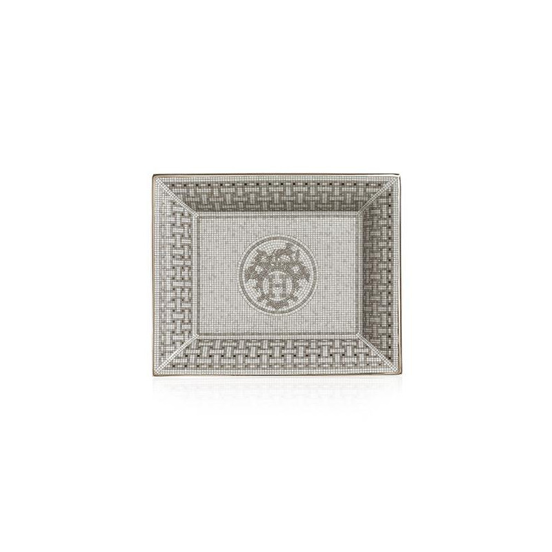 Hermes Mosaique au 24 Platino Vuotatasche Vuotatasche rettangolare in porcellana, il decoro è un mosaico di chiaroscuri di grigio. I cabochon platinati scinillano, attirando gli sguardi. Scandiscono la trama sobria e opaca dei fregi geometrici, falsamente regolari, ispirati all'antica Grecia. Dimensioni: 21 x 17 cm Codice: 35090P Per tutti i prodotti Hermés non disponibili al momento dell'acquisto, si prega di considerare tempistiche di consegna dai 6 fino ad oltre i 12 mesi.