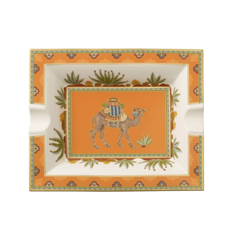 Un viaggio lungo la via della seta. Con l'esotica collezione Samarkand, ci si allontana dalla triste quotidianità. Le porcellane con motivi orientali conducono in un viaggio lungo la via della seta, raccontando storie di luoghi lontani e tesori nascosti. Eleganti colori come acqua marina, mandarino e rubino ricordano pietre preziose, perfettamente incastonate in motivi geometrici dorati.