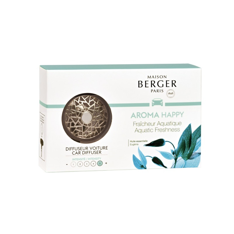 Il diffusore per auto Aroma Happy Freschezza Acquatica di Maison Berger ti accompagna durante i viaggi con una fragranza gioiosa e rinvigorente. Le note acquatiche si fondono con tocchi di mela e melone, donando all’ambiente un’atmosfera fresca e piacevole per un’esperienza di guida rilassante e positiva.