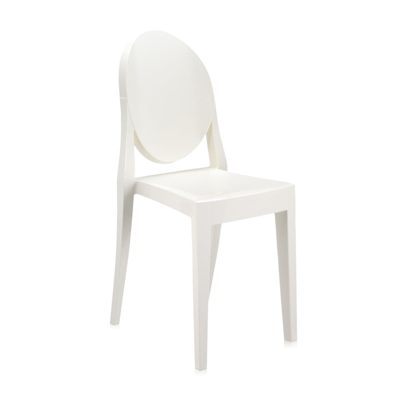 La sedia Kartell Victoria Ghost, progettata da Philippe Starck, nasce da linee classiche, con uno schienale arrotondato che richiama la forma dei medaglioni antichi, e una seduta lineare e geometrica. Realizzata in policarbonato trasparente o colorato, questa sedia è prodotta in un unico stampo ad iniezione. È stabile, confortevole, resistente agli urti e agli agenti atmosferici. Ancora una volta, Kartell dimostra il suo know-how tecnologico attraverso la creazione di oggetti che hanno reso il marchio famoso in tutto il mondo. La sedia Victoria Ghost è un prodotto di grande carisma e personalità, in grado di inserirsi con eleganza in qualsiasi tipo di ambiente.