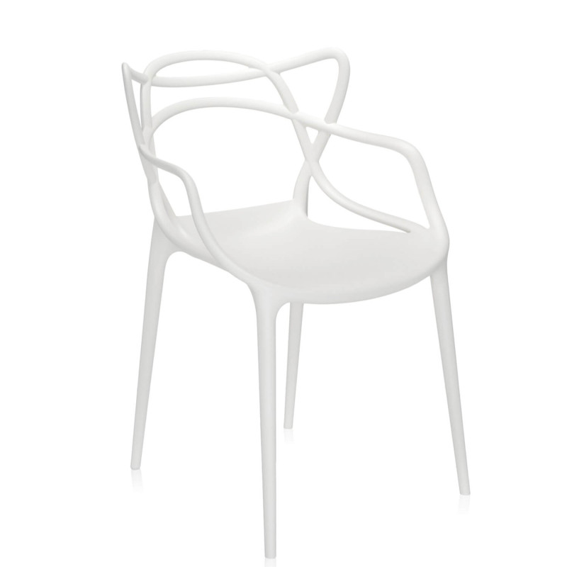 La sedia Masters, modello 5865 di Kartell, unisce leggerezza e funzionalità. Il suo schienale dalle linee intrecciate rende omaggio a tre sedie iconiche, realizzata in polipropilene colorato