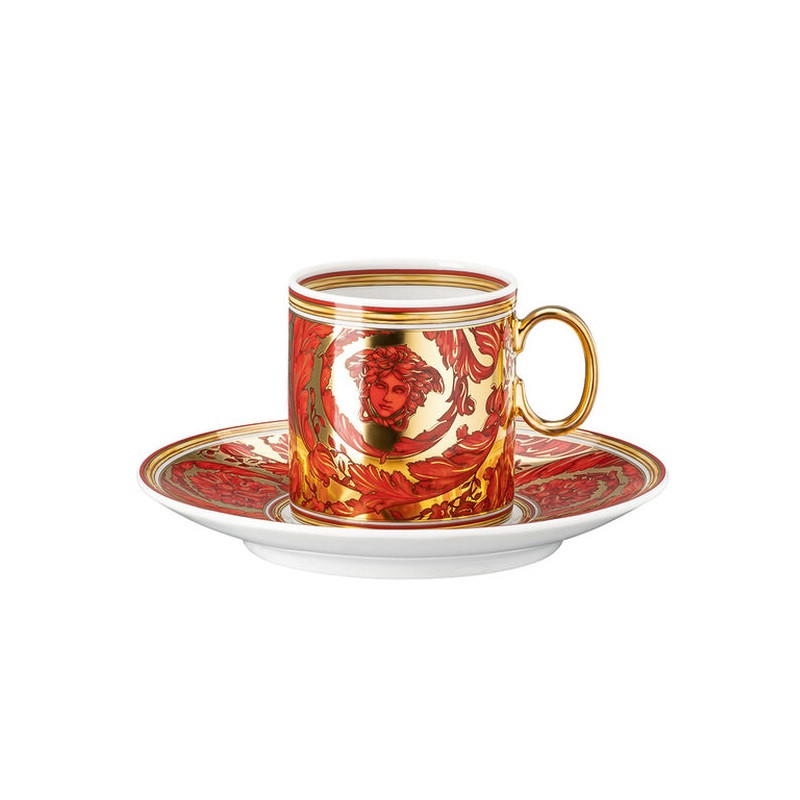 La collezione festiva Medusa Garland 2023 di Rosenthal & Versace si distingue per l'accostamento di rosso ai toni dell'oro. Piante e fiori barocchi sontuosi rivestono un ruolo centrale in questa linea, avvolgendo la gloriosa figura di Medusa, iconico emblema di Versace. Ornamenti delicati con medaglioni raffiguranti Medusa conferiscono un tocco vellutato alla nuova collezione, mentre tazze e altri elementi decorativi si presentano in sfumature di verde o rosso.