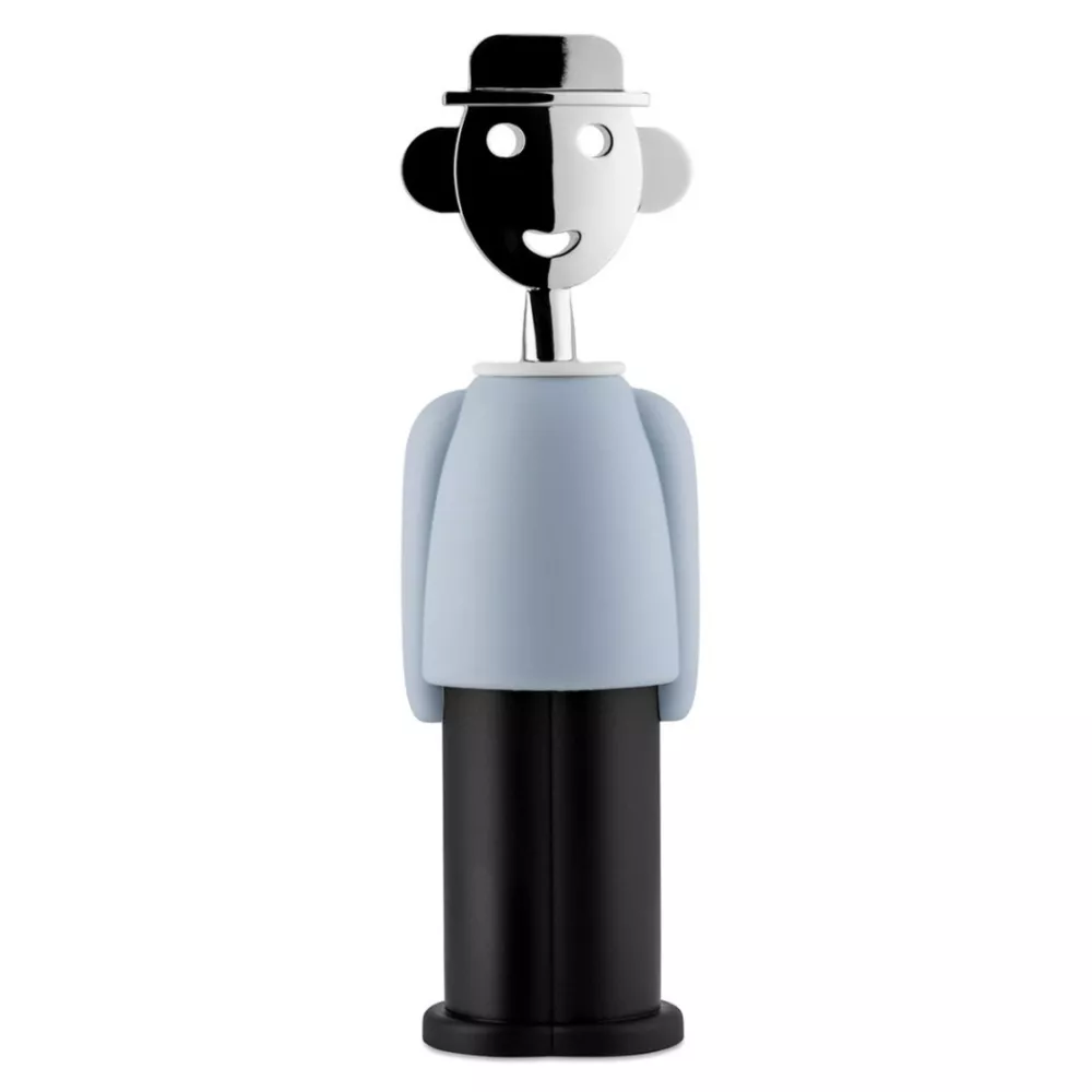 CORKSCREW, ALESSANDRO M. AM23 - ALESSI Self-portrait of design created by Alessandro Mendini, the Alessandro M. corkscrew returns in the Colour Tales collection, dressed anew with a series of iridescent outfits, paying homage to the chromatic exploration of its creator. Dedicated to collectors of Alessandro Mendini and his transformative corkscrews, and for those who want to uncork a good wine with a tool that blends function and emotion. Material: Thermoplastic resin and chromed zama Dimensions: Ø 6 cm, H 21 cm Code: AAM23