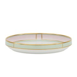 Decorated in four pastel shades — sky blue, yellow, pink, and green — enhanced with delicate gold details, this collection enhances the minimalist beauty of its shapes. Versatile and dynamic, "Diva" is ideal for everyday use, offering creative pairing possibilities: the sugar bowl transforms into a small bowl with a saucer, the salad bowl can become a soup bowl with its tray transformable into a lid, while the bread plates are perfect for serving small sweets during afternoon tea. Designed for stacking, these pieces combine practicality with everyday luxury, ideal for optimizing space without sacrificing style.