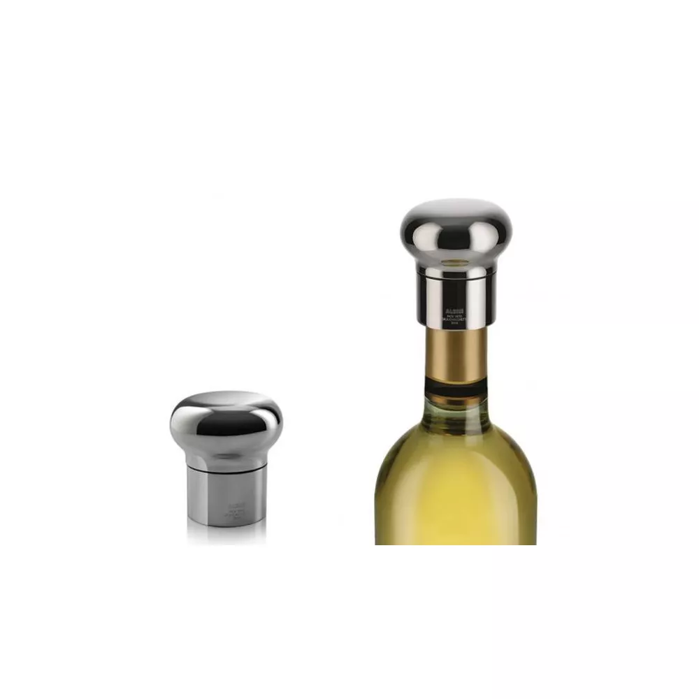 Alessi Wine bottle stopper Noè Code: GIA12 Wine and champagne bottle stopper with expanding seal in 18/10 stainless steel. The Bottle stopper designed by Giulio Iacchetti is suitable for both wine and champagne bottles. It's produced in polished steel and has a rubber inner section to close the cap with a pressure and expansion mechanism. Easy to use, insert by pressing and turning clockwise to fit the neck of the bottle. Diameter (cm): 5.50 Height (cm): 6.00