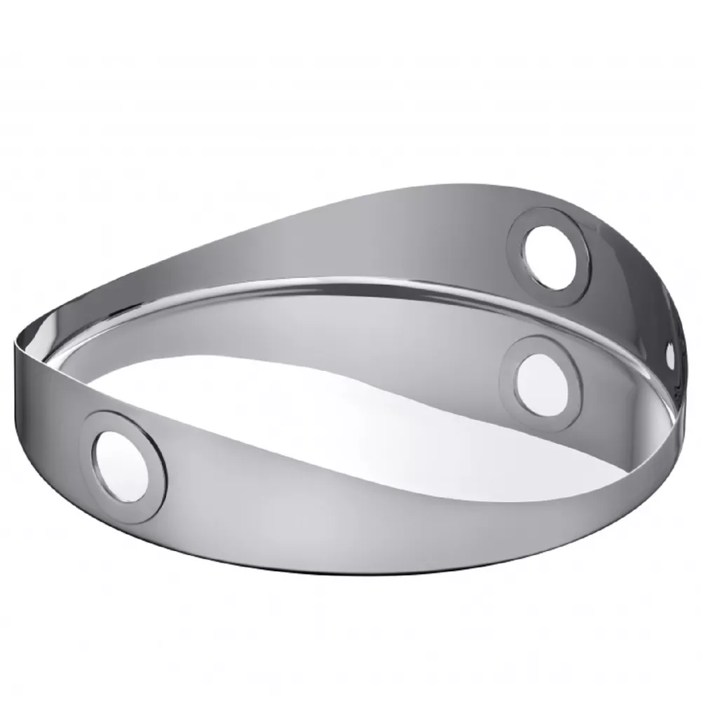 Christofle Oh De Christofle Stainless Steel Small Round Tray This small round stainless steel presentation/serving tray, with flush holes that act as handles, makes an ideal housewarming, hostess or wedding gift. The hip and modern Oh! collection provides most basics one needs to throw the perfect cocktail party or celebration while being anything but. MATERIAL • Stainless Steel DIMENSIONS • Ø: 40 cm