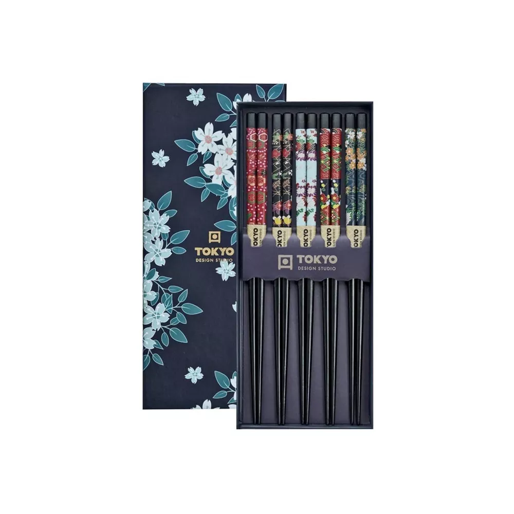 SET OF 5 PAIR OF CHOPSTICKS CHERRY BLOSSOM BLUE TK 17948 TOKYO DESIGN STUDIO