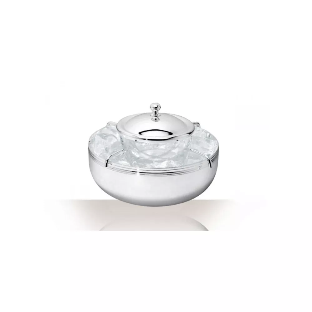 Albi Silver Plated Caviar Serving Set. Gift box incuded. The Albi two-piece Silver Plated caviar serving set contains an outer mirror polished presentation dish that can be filled with ice and a crystal container with a lid for the precious delicacy.