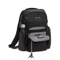 BLACK BACKPACK. 932793DL, NAVIGATION ALPHA BRAVO - TUMI STYLE: 142479-1041 Dimensions: 40.5 x 19 x 35.5 cm Weight: 1.697 kg Material: Ballistic/Leather INTERIOR FEATURES Daisy chains compatible with select TUMI+ accessories 2 card pockets 3 media pockets Zip pocket Padded tablet pocket Key leash TUMI Tracer® Pen holder
