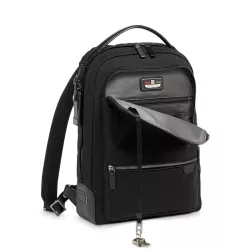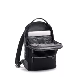 Bradner Backpack Harrison Tumi Dimensions: 42 x 9 x 29 cm Material: 100% Nylon Weight: 1.268 kg EXTERIOR FEATURES: Zip entry to main compartment Front U-zip pocket Front straight-zip pocket with padded lining Back quick-access pocket with magnetic snap Retractable leather top handle Padded/adjustable leather-trimmed backpack straps Add-a-Bag sleeve INTERIOR FEATURES: Padded laptop pocket (fits 14” screens) Zip pocket 3 open pockets 2 card pockets 2 pen loops Key leash TUMI Tracer® Code: 130533-1041 / 06602011D