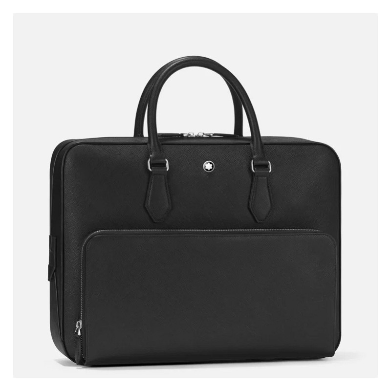 This document holder bag is equipped with a spacious main compartment and an external zippered pocket, making it perfect for storing A4 documents, electronic devices, and other essential work items. Additionally, it features two pockets for writing instruments. Thanks to its modular design, the accessory can be attached to other Sartorial bags. The bag is made of high-quality leather, which gives it an elegant and refined appearance. Material: Saffiano printed full-grain bovine leather. Colour: black. Lining: Cotton and polyamid lining Closure: Zip Dimensions: 39 x 9 x 30 cm Code: MB130271