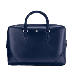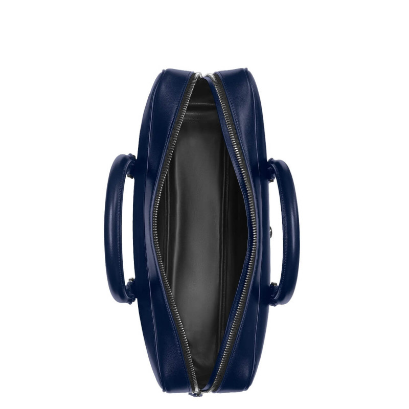 Inspired by the art of writing, the Meisterstück document case is an elegant companion for business travel. Made from a new type of extremely shiny leather in the Ink Blue color, it features stitching, zipper pullers, and handles that recall the shape of a pen, the true essence of Montblanc. A larger version of the logo adorns the bag. The leather top handles, removable leather shoulder strap, and satellite system offer a variety of carrying options, while the internal pockets ensure convenience. Sku: MB 131688 Material: Calf-skin leather Strap: Adjustable and removable leather shoulder strap Color: Ink Blue Lining: Coated canvas Dimensions: 37.5 x 8 x 27.0 cm DISCOVER THE COLLECTION: Meisterstück by Montblanc