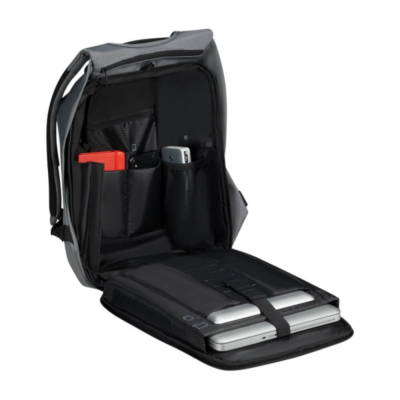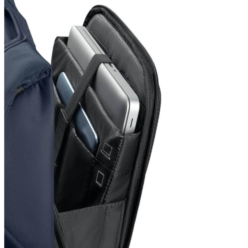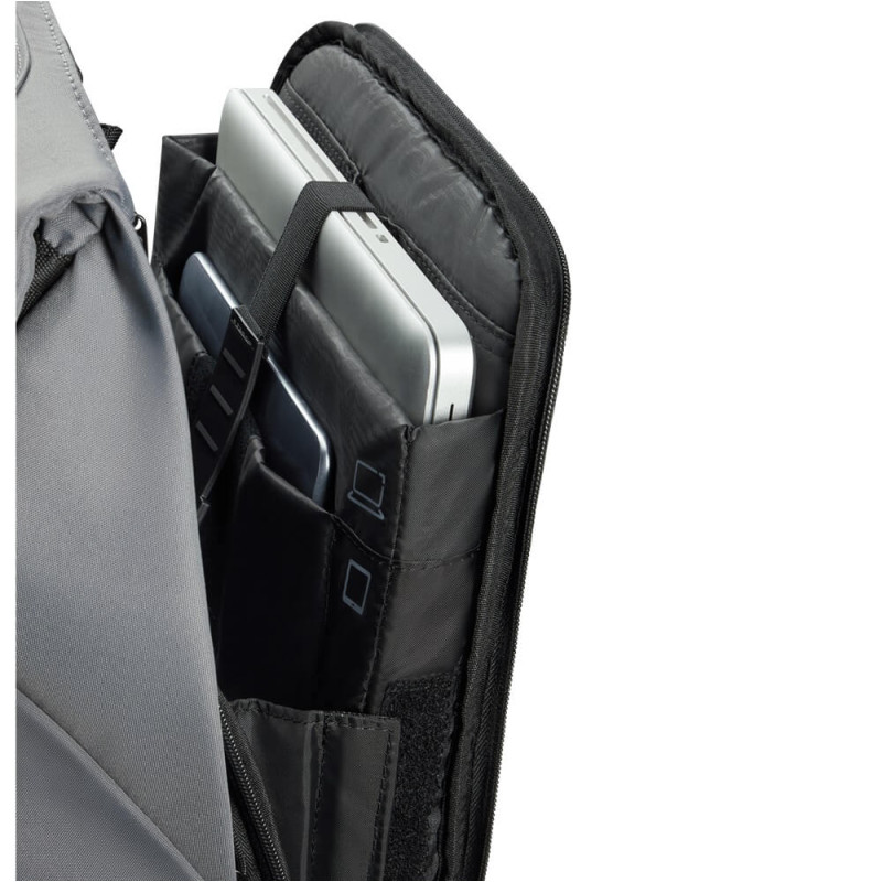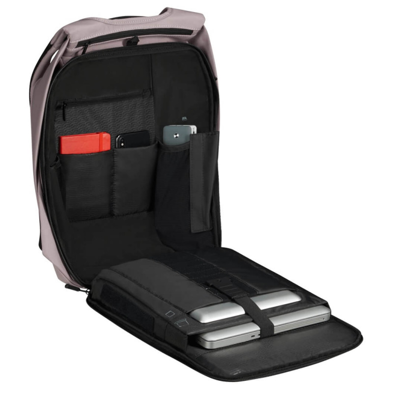 The Securipak 2.0 laptop backpack by Samsonite reinvents urban travel with advanced anti-theft protection and sustainable materials. Featuring a reinforced structure, it combines modern design with enhanced security, including cut-resistant fabric, hidden side pockets, and an RFID-protected top pocket to safeguard against digital theft. Made from 100% post-consumer recycled PET under the Recyclex™ Material Technology Initiative, it’s both eco-friendly and durable. With ergonomic shoulder straps, a dedicated laptop and tablet compartment, and a Powerbank pocket, Securipak 2.0 delivers comfort, safety, and style for everyday commuting.