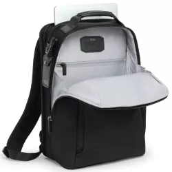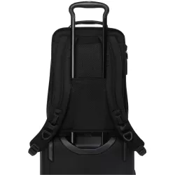 The Alpha Medium Expandable Backpack 15 158980-1041 by Tumi is designed for those who demand more from every business journey. Clean and professional in appearance, it combines refined detailing with bestselling functionality for effortless hands free commuting. The main compartment features zip entry with magnetic zipper garage, complemented by a padded laptop compartment fitting up to a 15 inch PC or 16 inch MacBook. A 2.5 in expansion increases capacity when needed. With a microfiber lined quick access back pocket, Add a Bag sleeve and advanced interior organization, it is a professional business backpack that balances style, comfort and efficiency.