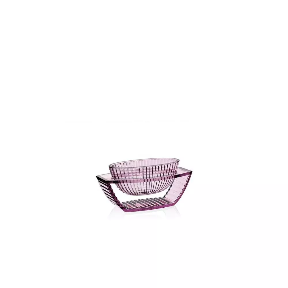 U SHINE CENTERPIECE, 1218 - KARTELL Eugeni Quitllet signs a precious collection for Kartell of decorative vases in transparent PMMA. The line is composed of a vase and a centerpiece, details for elegant déco-inspired geometries. The particularity of these two vases is given by the finish of the plastic material, so sophisticated that they seem to be made literally in crystal. Material: Transparent or mass-colored PMMA dimensions Width: 29 cm Depth: 15 cm Height: 14 cm Unit weight: 1.05 kg
