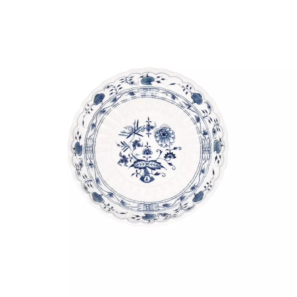 Manufacturer: Meissen State Porcelain Manufactory Collection: Neuer Ausschnitt, decoration Blue Onion The cobalt blue decoration on white porcelain was inspired by the decorations of East Asia. Item: round serving dish Code: 00430/800101 Dimensions: diameter 20 cm Maintenance: suitable for dishwasher