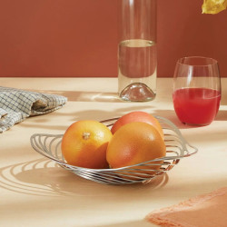 BREAD BASKET, TRINITY AC02 - ALESSI Trinity is a basket designed starting from a simple geometric shape that is developed, as if it were a vortex, to form an elegant concentric structure. Adam Cornish's desire is to recreate the appearance of a natural element through modern industrial production processes. The dynamic shape of the "Trinity" basket is achieved through a laser-cutting process of the steel sheet, subsequently shaped with a mechanical operation Basket produced in steel
