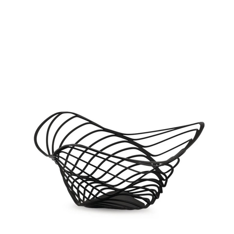 CITRUS BASKET, TRINITY ACO04 - ALESSI The dynamic formal rhythm of the "Trinity" Citrus Basket is created starting from a simple geometric shape that is developed, as if it were a vortex, to form an elegant concentric structure. Made of stainless steel, the citrus basket reproduces the appearance of a natural element through modern industrial production processes. The sinuous shape of the "Trinity" Citrus Basket is achieved through a laser cutting process of the steel sheet, followed by mechanical shaping. Designed by Adam Cornish Material: Stainless steel colored with epoxy resin.