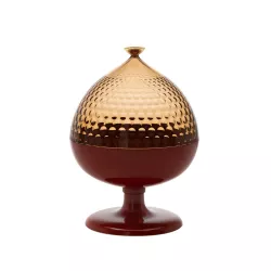 PUMO STORAGE CONTAINER, 1551 - KARTELL Pumo is a versatile container that draws inspiration from the shapes of a traditional Puglian object, which symbolizes good luck. Kartell has reinterpreted it with a multifaceted lid, making it perfect as a centerpiece. This object is not only ideal for storage and organization, but it can also be used as a centerpiece, adding a decorative and evocative touch to the environment. Structure material: Transparent And/Or Mass-Coloured Thermoplastic Technopolymer Fireproof: Not Fireproof Usage: Indoor Dimensions: H 29 cm, Ø 21 cm