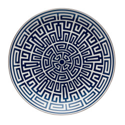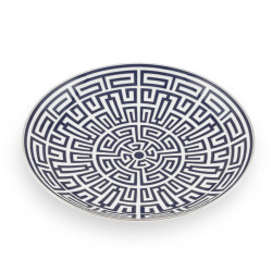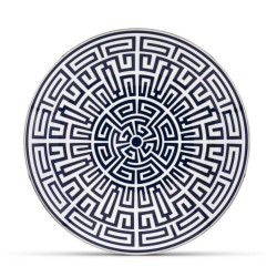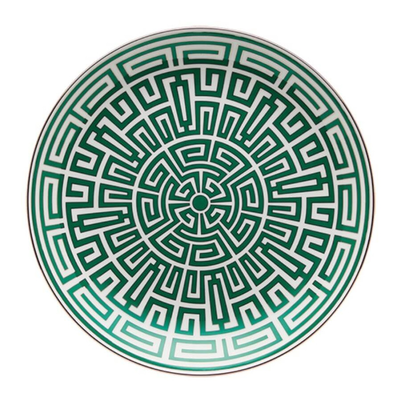 The Labirinto Venezia centerpiece plate by Ginori 1735 is a porcelain masterpiece featuring a sophisticated geometric design. Created by Gio Ponti, this plate showcases a scarlet red labyrinth adorned with distinctive platinum edging. Ideal for making a statement at the center of the table, it serves both as a decorative element and for presenting refined appetizers, desserts, or arrangements of bread and fruit. Labirinto is also available in various colors and pairs beautifully with the Catene collection for a refined flow of lines and geometries.
