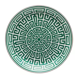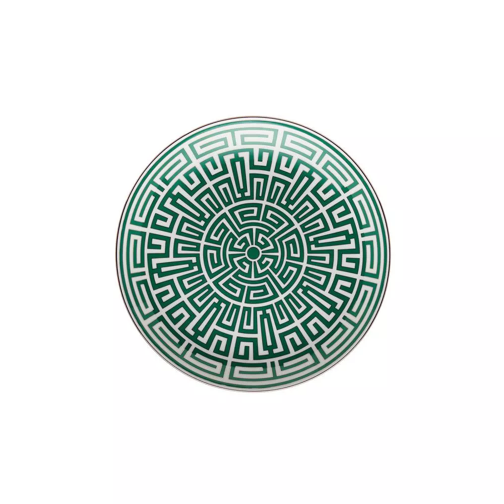 The Labirinto Venezia centerpiece plate by Ginori 1735 is a porcelain masterpiece featuring a sophisticated geometric design. Created by Gio Ponti, this plate showcases a scarlet red labyrinth adorned with distinctive platinum edging. Ideal for making a statement at the center of the table, it serves both as a decorative element and for presenting refined appetizers, desserts, or arrangements of bread and fruit. Labirinto is also available in various colors and pairs beautifully with the Catene collection for a refined flow of lines and geometries.