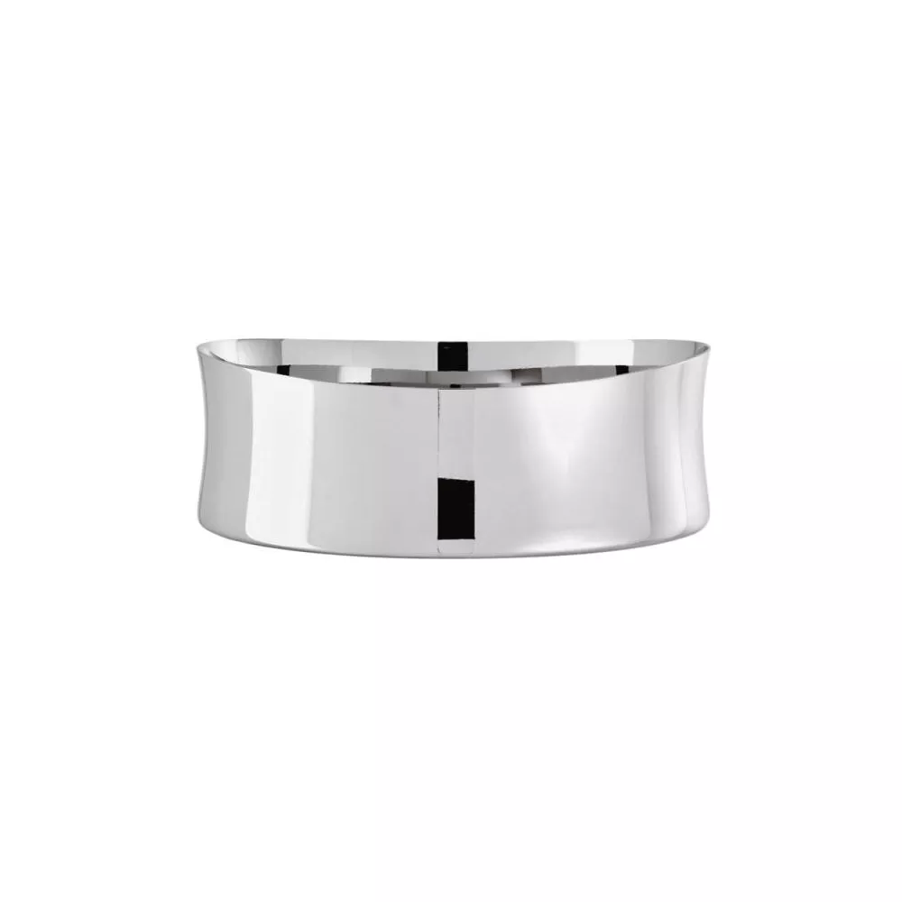 SAMBONET - BAMBOO - ARTICLE No. 56775-20 BREAD BASKET Material: stainless steel. Dimensions: ø 20.00 cm - h. 7.00 cm. Suitable for the dishwasher. In the contemporaneity and modernity of its oval section, Bamboo evokes distant reminiscences of the organic design of the '40s bringing elegance and functionality to the table.