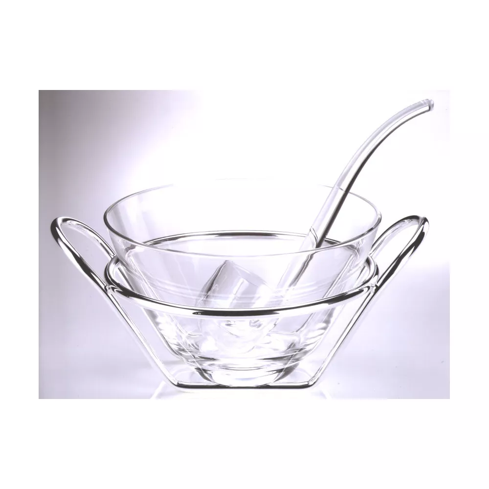 GLASS BOWL WITH LADLE, 26cm; ARGENTERIA DONATELLO, AD HOME Glass bowl with ladle and silver-plated holder . Dimensions: 26 cm Item code: BHL0024