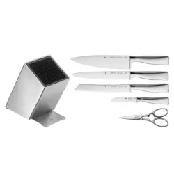 The Grand Gourmet Knife Block Set by WMF embodies culinary excellence through precision, performance, and design. Featuring Performance Cut technology, each hand-forged blade ensures exceptional sharpness and long-lasting durability. The innovative FlexTec knife block accommodates up to 15 knives of varying shapes and sizes, providing smart, secure storage. Designed by Japanese creator Makio Hasuik, the award-winning Grand Gourmet collection combines sleek stainless steel aesthetics, ergonomic balance, and flawless craftsmanship—offering a refined touch of professional mastery to any kitchen.