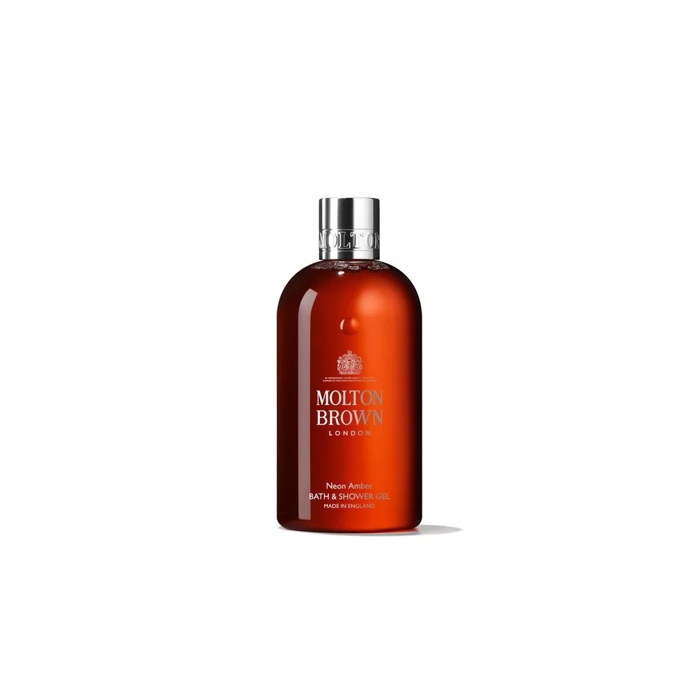 NEON AMBER BATH & SHOWER GEL, 300 ML - MOLTON BROWN Turbo-charge bathing rituals with the Neon Amber Bath & Shower Gel; our iconic gel formula fragranced with bright mandarin oil, creamy tonka absolute and warm ambroxan. Translucent gel formula Suitable for all skin types Bottle made from 50% recycled plastic (excluding cap)
