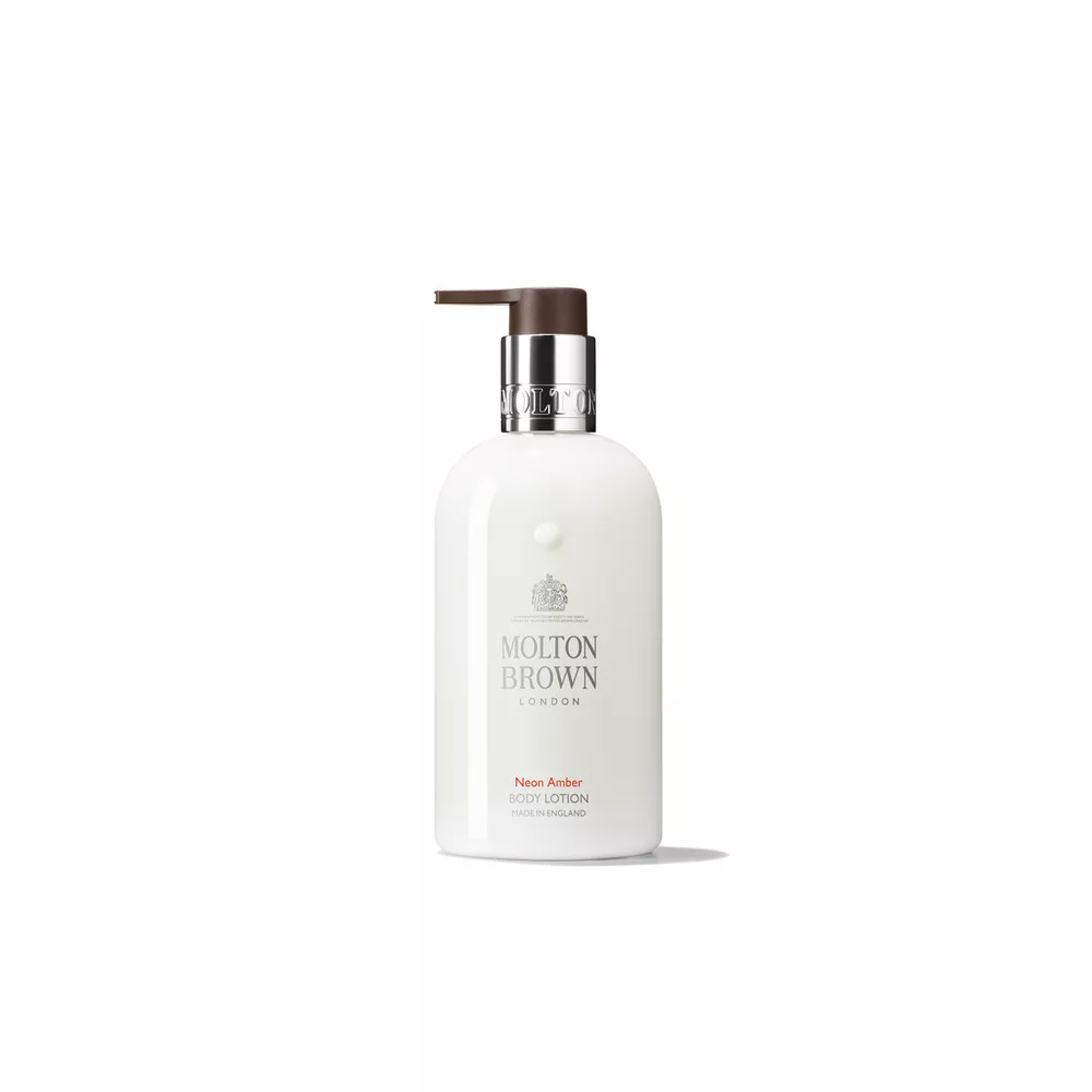 300 ML BODY LOTION, NEON AMBER - MOLTON BROWN Hydrate your skin after a bath with this body lotion, a light and radiant nourishing cream with hints of bright mandarin oil, creamy tonka absolute, and warm ambroxan.