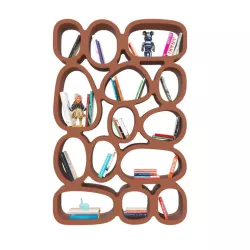 The Koibuchi bookcase by Qeeboo, designed by Stefano Giovannoni, reimagines space as a fluid and modular element. Inspired by a wall of sliced and perforated stones, it creates a network of irregular interconnected compartments for books, plants and decorative objects. Free standing and adaptable, it can be placed vertically or horizontally, used as a room divider or mounted on the wall. A statement piece combining iconic design, modular function, sculptural presence and contemporary versatility.