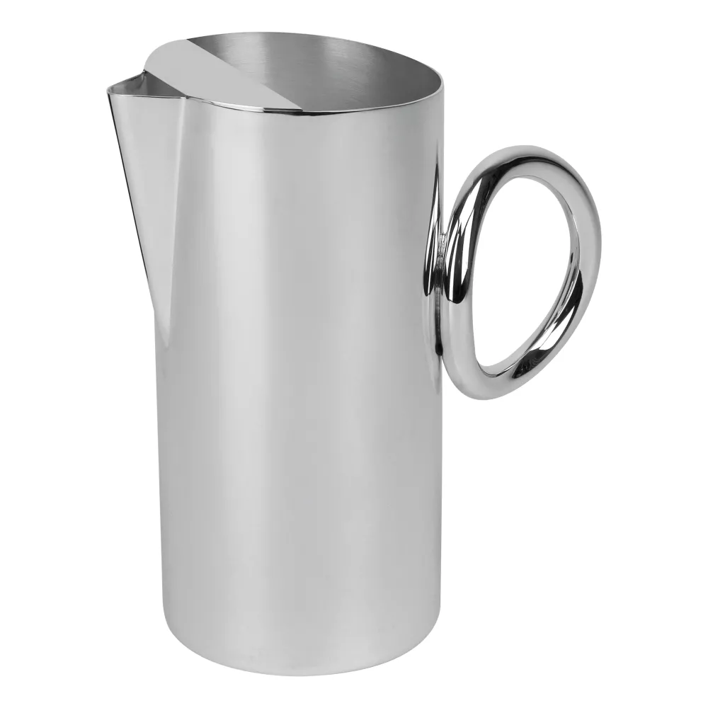 The Vertigo silver-plated water pitcher is a modern and chic addition to any beverage service and makes an excellent gift for so many occasions including weddings, birthdays and housewarmings. Vertigo’s bold motif — a subtly asymmetrical, thick ring often placed at playful angles — can be found on every piece in the collection designed by Andrée Putman. Capacity: 1,5 lt