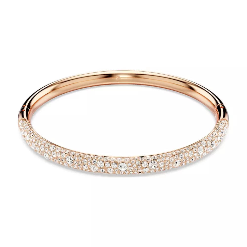 Shimmering like stardust, this Sublima bangle brings a celestial glow to everyday style. The rigid band, plated in gold, rose gold, or rhodium, wraps gracefully around the wrist and features a dazzling pavé of round crystals in mixed sizes and shades. A refined and luminous piece that exudes effortless sophistication.