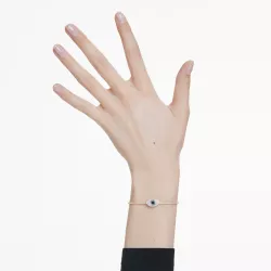 Collection: Symbolica Length: S - 15.5 cm / M - 17 cm / L - 18 cm Inner diameters: S - 5.5 x 3.6 cm / M - 5.9 x 4 cm / L - 6.1 x 4.2 cm Motif size: 0.9 x 1.5 cm Opening distance: S - 4 cm / M - 4.5 cm / L - 4.7 cm Material: Crystals, Gold-tone plated Color: Blue Clasp type: Lobster