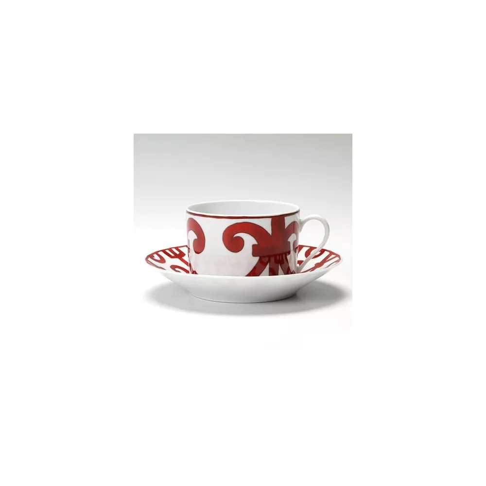 Hermes Balcon Du Guadalquivir Breakfast Cup & saucer Along the banks of the Guadalquivir in southern Spain, Andalusian homes proudly display the lace-like patternsof their wrought-iron balconies. This porcelain collection highlights their exuberance in a fiery red hue. Capacity: 34 cl Material: porcelain Code: 11015P For all Hermès products that are not available at the time of purchase, please consider a delivery time of 6 to over 12 months