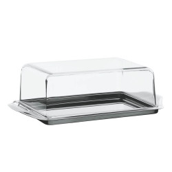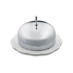 ALESSI DRESSED For those who love their breakfast (and not only), Marcel Wanders has created a series of additional articles for the “Dressed” service. This big collection reveals one of the typical traits of Wanders’ language, where ancient shapes and style features are echoed in a totally contemporary interpretation. Butter dish in porcelain with lid in 18/10 stainless steel mirror polished. code: MW16 Diameter : 12 cm Height :7.60 cm